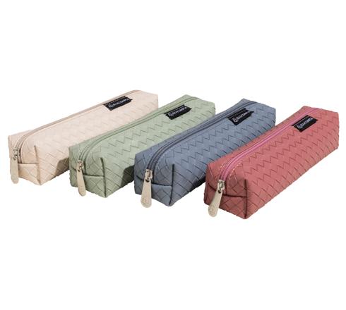 Das Schlampermäppchen Sienna aus Kunstleder (PU) mit Flechtmuster zeichnet sich durch seine sorgfältige Verarbeitung und seine eleganten, modernen Farben aus.