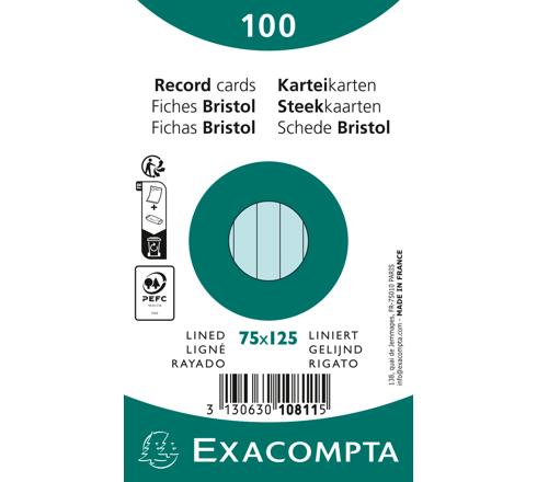 EXACOMPTA PACK OF 100 RECORD CARDS 75X125 ASSORTED LINED - SKY BLUE