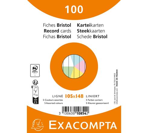 KARTEIKARTEN A6, PACKUNG MIT 100 STÜCK EINGESCHWEISST, LINIERT, NICHT GELOCHT, FARBEN SORTIERT - FARBEN SORTIERT