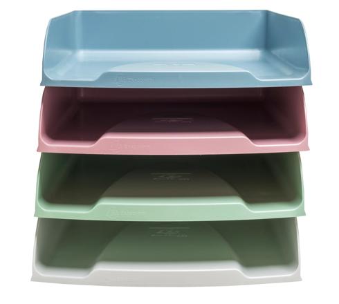 Top-Design kombiniert mit hoher ökologischen Verantwortung. Das Produkt wird aus weißem Kunststoff hergestellt, der aus Abfall stammt. Die Briefablage der Reihe AutentiK ist also ein Produkt, das gebrauchtem Kunststoff neues Leben einhaucht. Eine Innovation von Exacompta. Diese Serie mit skandinavischen Einflüssen und den Farben Weiß, Candy Pink, Salbeigrün und Blaugrau fügt sich sowohl Zuhause als auch in Büros gut ein.