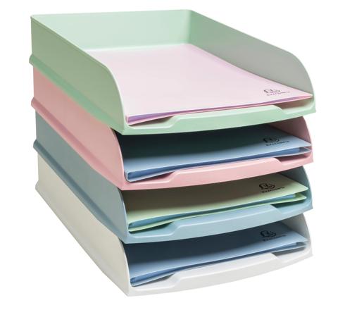 Top-Design kombiniert mit hoher ökologischen Verantwortung. Das Produkt wird aus weißem Kunststoff hergestellt, der aus Abfall stammt. Die Briefablage der Reihe AutentiK ist also ein Produkt, das gebrauchtem Kunststoff neues Leben einhaucht. Eine Innovation von Exacompta. Diese Serie mit skandinavischen Einflüssen und den Farben Weiß, Candy Pink, Salbeigrün und Blaugrau fügt sich sowohl Zuhause als auch in Büros gut ein.