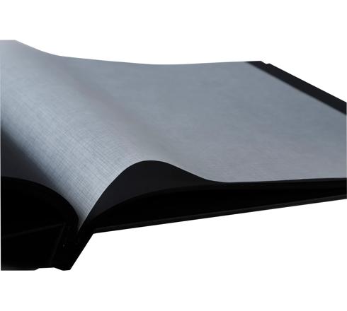 Die Seiten sind aus schwarzem, hochwertigen Karton 250g/m2, mit dem eine ausgezeichnete Aufbewahrung der Abzüge gelingt. Mit schützenden Pergaminzwischenblättern.