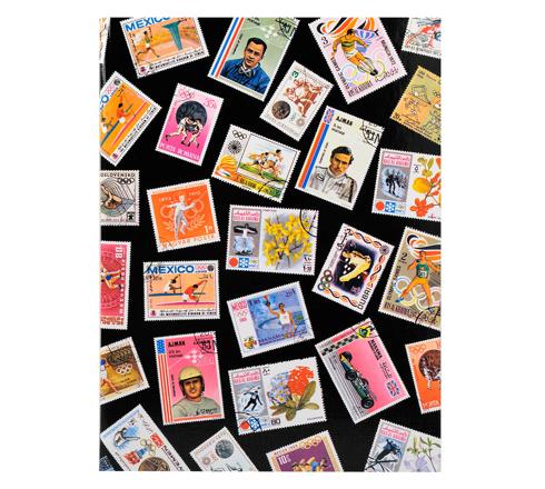Album für Sportkollektionen und große sportliche Ereignisse. Schwarzer Einband in Textiloptik mit Sportbriefmarken.