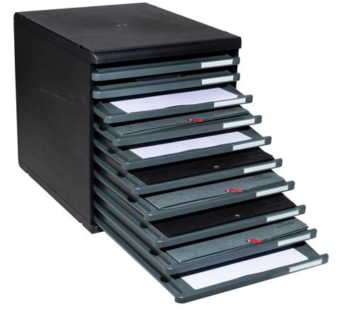 SCHUBLADENBOX MODULO A4, 10 OFFENE SCHUBLADEN - DUNKELGRAU