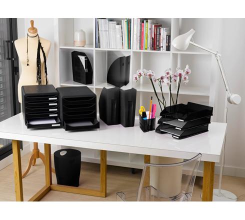 Die Schubladenbox Big Box Plus von Exacompta verfügt über 5 Schubladen, in denen Sie Dokumente im Format A4 und A4+, Sammelmappen mit Gummizug 24x32cm oder großformatige Umschläge ablegen können. Sie eignet sich für den Einsatz im Büro, Home Office oder in der Schule.