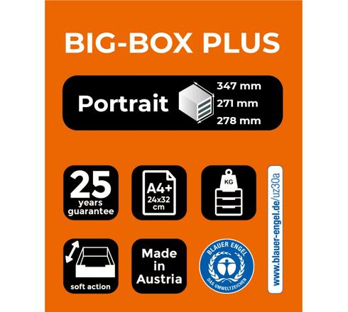 Die Schubladenbox BIG BOX PLUS von Exacompta verfügt über 5 Schubladen, in denen Sie Dokumente im Format A4 und A4+, Sammelmappen mit Gummizug 24x32cm oder großformatige Umschläge ablegen können. Sie eignet sich für den Einsatz im Büro, Home Office oder in der Schule.