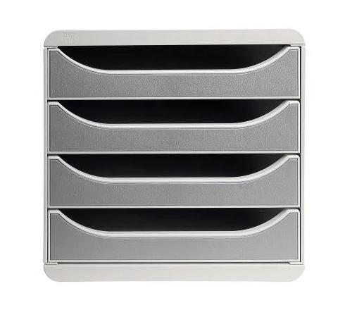 Die Schubladenbox Big Box Plus von Exacompta verfügt über 4 Schubladen, in denen Sie Dokumente im Format A4 und A4+, Sammelmappen mit Gummizug 24x32cm oder großformatige Umschläge ablegen können. Sie eignet sich für den Einsatz im Büro, Home Office oder in der Schule.