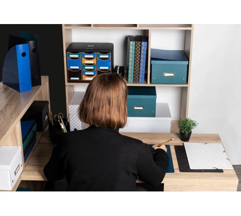 Das Ablagemodul Store-Box Multi Neo Deco ist vielseitig einsetzbar. Dank seiner 11 Schubladen kann es all Ihre Büroutensilien aufbewahren und organisieren. Die 7 kleinen, flachen Schubladen sind ideal für Haftnotizzettel, Karten, Stifte, Büroklammern, Kaffeekapseln und weitere kleinere Accessoires. Die 4 hohen Schubladen eignen sich für größere Gegenstände wie Scheren, Klebeband, Ladekabel, Hefter oder etwa auch Stempelkissen. Die Schubladenbox ist somit perfekt für den Einsatz im Büro, Home Office oder in der Schule.