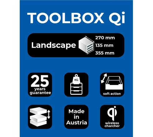 Die Toolbox Mini ist mit einer praktischen Induktions-Ladefunktion ausgestattet, mit der Sie Ihr Smartphone immer in Sichtweite sicher aufladen können.