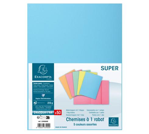 PAQUET DE 50 CHEMISES 1 RABAT SUPER 210 - 24X32CM - COULEURS ASSORTIES