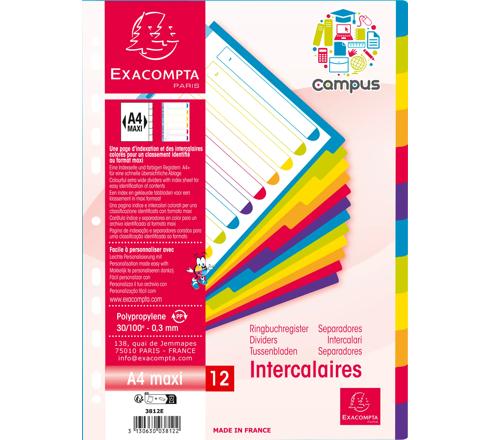 REGISTER MIT FARBIGEN TABEN AUS PP 300µ, 12-TEILIG, FÜR DIN A4 MAXI - CAMPUS - TRANSLUZENT
