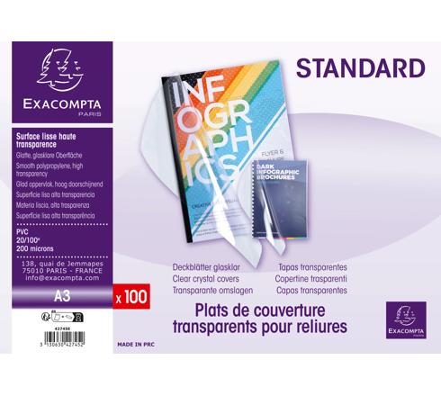 100ER PACKUNG EINBANDDECKEL AUS PVC 200µ, FÜR DIN A3 - KRISTALL