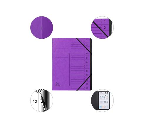 ORDNUNGSMAPPE MIT GUMMIZUG, INNEN SCHWARZ, 12 FÄCHER - A4 - VIOLETT