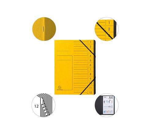 TRIEUR AGRAFÉ AVEC ÉLASTIQUES INTÉRIEUR NOIR 12 COMPARTIMENTS - A4 - JAUNE