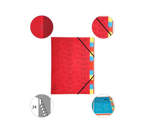 ORDNUNGSMAPPE AUS COLORSPAN-KARTON 355G/QM MIT GUMMIZUG, 24 FÄCHER, FÜR FORMAT DIN A4 - ROT