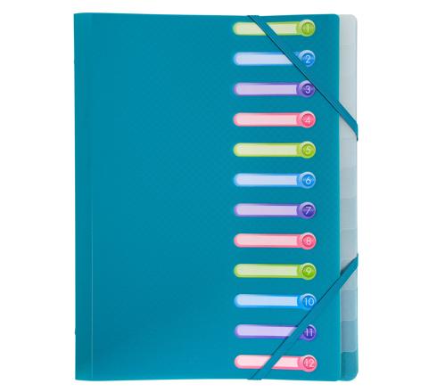 ORDNUNGSMAPPE OPAK AUS PP MIT 3 KLAPPEN UND 12 FÄCHERN - FARBEN SORTIERT