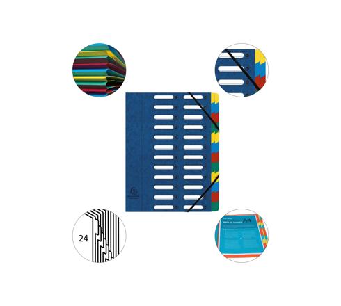 ORDNUNGSMAPPE HARMONIKA MIT AUSGESTANZTEN FENSTERN UND GUMMIZUG, AUS COLORSPAN-KARTON, 24 FÄCHER, FÜR DIN A4 - BLAU