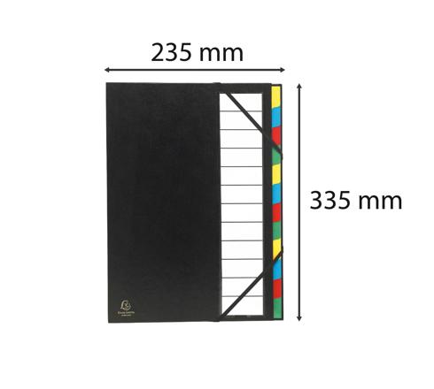 ORDNUNGSMAPPE MIT FESTEM DECKEL 3MM, GUMMIZUG UND DEHNBAREM FALTENRÜCKEN, 12 FÄCHER, ORDONATOR, FÜR FORMAT DIN A4 - SCHWARZ