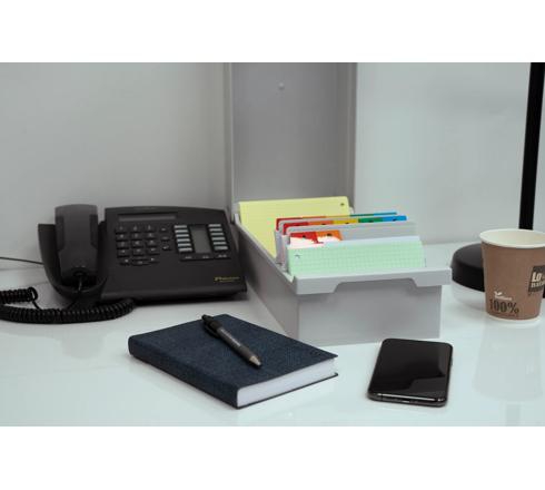 Inklusive 1 Trennplatte. Für bis zu 600 Karteikarten.