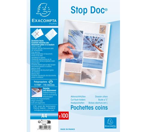 PACKUNG MIT 100 AKTENSICHTHÜLLEN STOP DOC AUS GLATTEM PP 110µ, FÜR FORMAT DIN A4 - KRISTALL