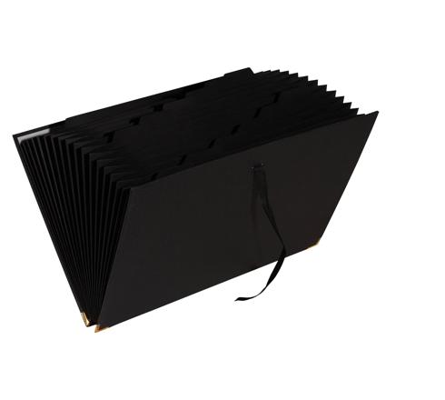 Die Dokumentenmappe von Exacompta ist mit 18 dehnbaren Fächern aus schwarzem Karton von Clairefontaine ausgestattet. Sie bieten eine hohe Ablagekapazität.