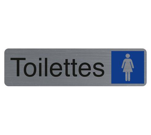 PLAQUE ADHÉSIVE IMITATION ALUMINIUM TOILETTES DAME 16,5X4,4 CM - GRIS