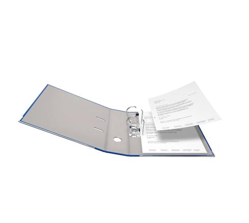 Kunststoff-Schlitzordner, mit Wechselfenster, extrem strapazierfähig durch Kaschierung mit griffig genarbter PP-Folie, grauer Innenspiegel, mit verstärkter Qualitätshebelmechanik, Kantenschutz, in den gängigen Farben des Marktes, FSC®-zertifiziert