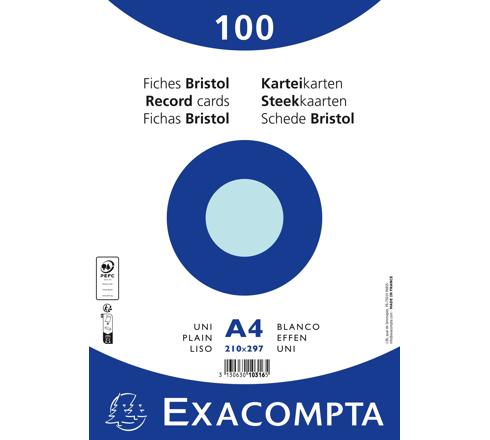 Pack of 100 coloured record cards shrink-wrapped - plain 210x297mm A very specific manufacturing process from fibres of selected origins. White cellulose used in neutral PH, can be used without damage to the environment -Exacompta record cards are products of very high quality with a proven and recognised reputation. Each kind of record card (squared, plain, punched, assorted colours , ...) is delivered in packaging of different colours, easily recognizable and practical for sale.