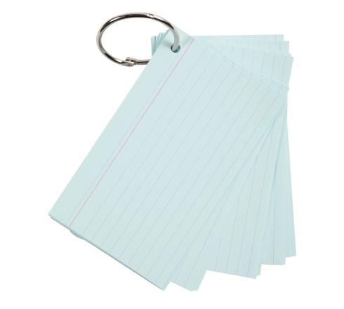 PAQUET DE 50 FLASHCARDS SOUS FILM + ANNEAU - BRISTOL LIGNÉ PERFORÉ - FORMAT A7 - COULEURS ASSORTIES