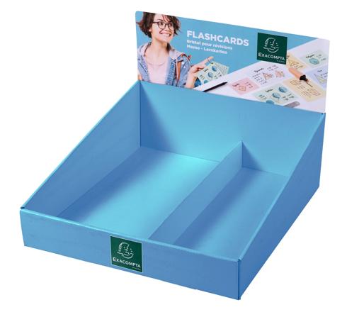 Présentoir composé de 38 paquets de 50 flashcards, formats A6 et A7. Pratique, à poser sur le comptoir ou en rayon.