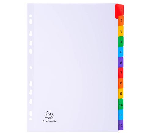 REGISTER NUMERISCH BEDRUCKT, WEISSER KARTON 160G/QM, 12 TABEN, 1-12, DIN A4 - WEISS
