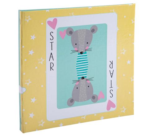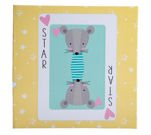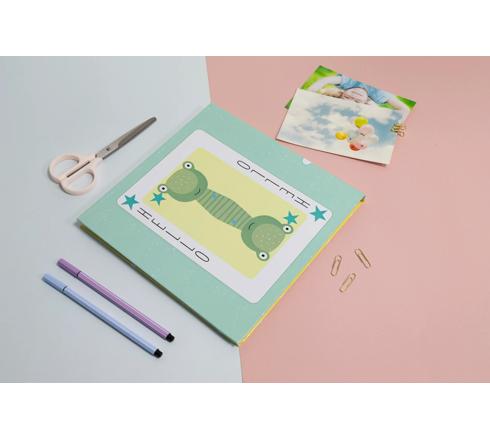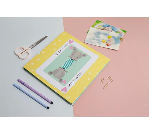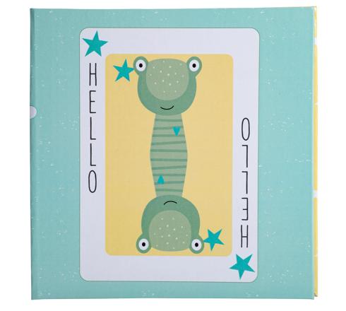 Vorder- oder Rückseite: wählen Sie Ihr Lieblingsmotiv, um die Erinnerungen der Geburt und die ersten Jahre des Kindes aufzubewahren und zu teilen. Mit süßen, kindgerechten Motiven im Kartenspielstil.