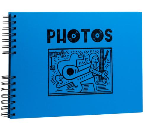 FOTOALBUM MIT SPIRALBINDUNG, 50 SCHWARZE SEITEN, MUSICART - BLAU