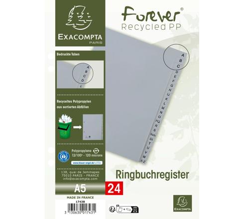 REGISTER A5 AUS RECYCLING-PP GRAU 120µ MIT BEDRUCKTEN TABEN A-Z (INKL. SCH, ST), 24 POSITIONEN - GRAU