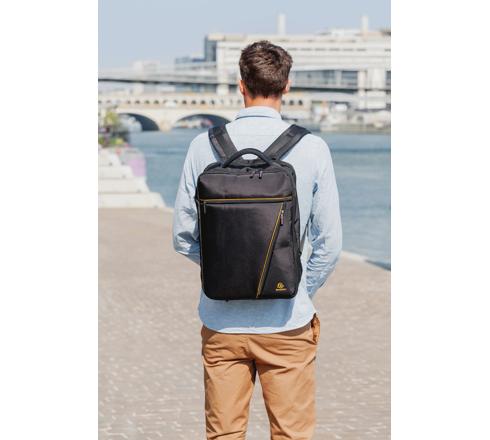 Die Tasche Dual aus dem Sortiment Exactive ist eine Mischung aus Rucksack und Tasche. Die Tasche lässt sich einfach auf dem Rücken oder an der Seite tragen.