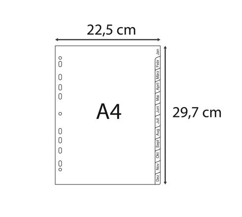 Register A4 für Ringbuch und Ordner aus grauem Recycling-PP 120µ. 12 bedruckte Taben Jan.-Dez. Diese Register aus grauem, flexiblem PP sind mit dem Blauen Engel zertifiziert. Eine praktische und umweltfreundliche Lösung für die Ordnung Ihrer Unterlagen.