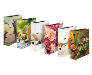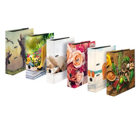 MOTIVORDNER MIX2023 SORTIERT DIN A4, RÜCKENBREITE 8CM, SCHWARZER INNENSPIEGEL, GRIFFLOCH - MOTIVE SORTIERT
