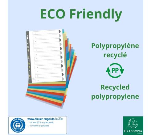 REGISTER AUS RECYCLING PP 300µ MIT 12 POSITIONEN FOREVER, FÜR FORMAT DIN A4 - FARBEN SORTIERT