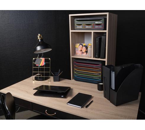 Dank ihrer geringen Höhe (13,5 cm) kann die TOOLBOX als Erhöhung für den Bildschirm oder die Kaffeemaschine verwendet werden.