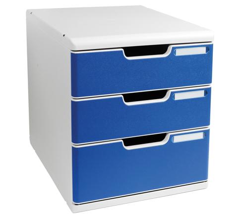 SCHUBLADENBOX MODULO A4, 3 GESCHLOSSENE SCHUBLADEN - BLAU
