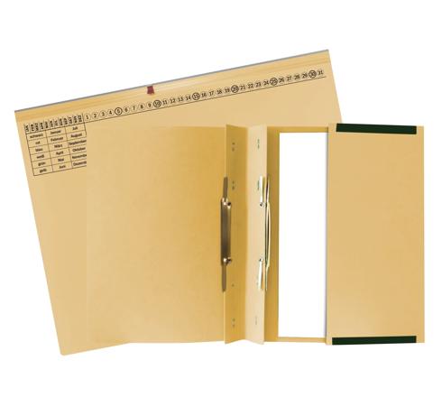 Mit 2 Abheftvorrichtungen, zur Linksheftung. Gebrauchsfertig gefalzt. Komplett ausgerüstet, inklusive Spezialklammer und Metalldeckleiste.