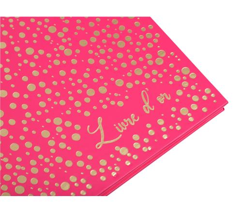Dieses farbenfrohe Gästebuch bietet ein außergewöhnliches Design mit goldenen Punkten, die auf dem Einband eingeprägt sind. Außerdem ziert ein leichter Schriftzug - Livre d'or (Dt. Gästebuch) - den Einband und macht das Album Plum' perfekt, um die schönsten Erinnerungen Ihres Lebens festzuhalten.