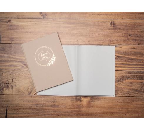Mit seinen leichten Farbtönen und der elliptischen, floralen Markierung mit goldenem Schimmer passt das Ringflower-Gästebuch perfekt zu Ihrem Hochzeitsthema, sei es ländlich, blumig oder klassisch.