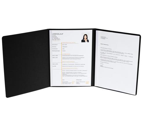 Fassungsvermögen: bis zu 30 Blatt DIN A4. Kann als Bewerbungsmappe oder Präsentationsmappe verwendet werden.