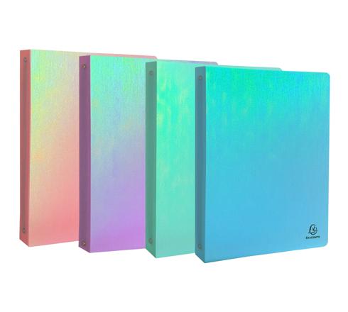 Polypropylen 700 mit holografischem Effekt. Rückenbreite 40 mm. 4 Ringe in O-Form Ø 30 mm. Außenformat: 320x268 mm - Ablageformat DIN A4 MAXI.