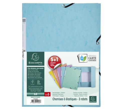 SAMMELMAPPE A4 MIT GUMMIZUG AUS COLORSPAN-KARTON 400G/M2, SERIE AQUAREL, PACKUNG MIT 6 STÜCK - FARBEN SORTIERT - NEU