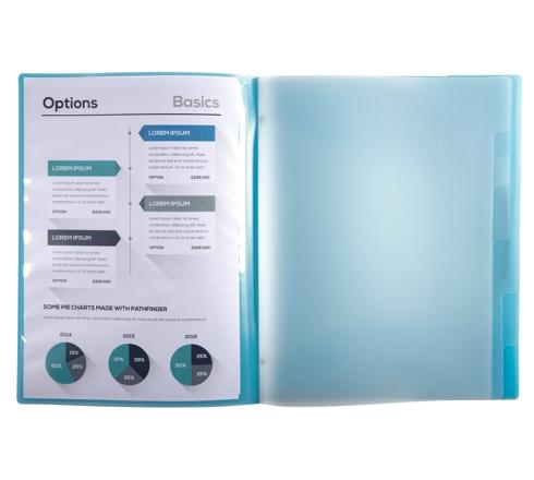 Dank der vorgestanzten Femster auf der Vorderseite und der A4-Hülle innen kann die Fächermappe ganz leicht personalsiert werden.