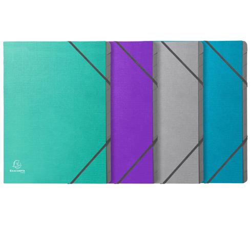 ORDNUNGSMAPPE A4 GEHEFTET, MIT GUMMIZUG UND 3 KLAPPEN, 12 FÄCHER, TEKSTO - FARBEN SORTIERT