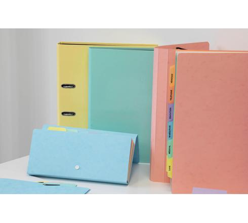 Eine Neuheit für die Organisation Ihrer Ablage: diese Fächermappe, innen aus Karton, mehrfarbig in Pastelltönen, vereint das Nützliche mit dem Schönen.