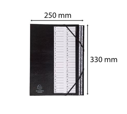 ORDNUNGSMAPPE MIT FESTEM DECKEL, GUMMIZUG UND DEHNBAREM HARMONIKA-RÜCKEN, 26 FÄCHER MIT KUNSTSTOFFTABEN A-Z ORDONATOR, FÜR FORMAT DIN A4 - SCHWARZ
